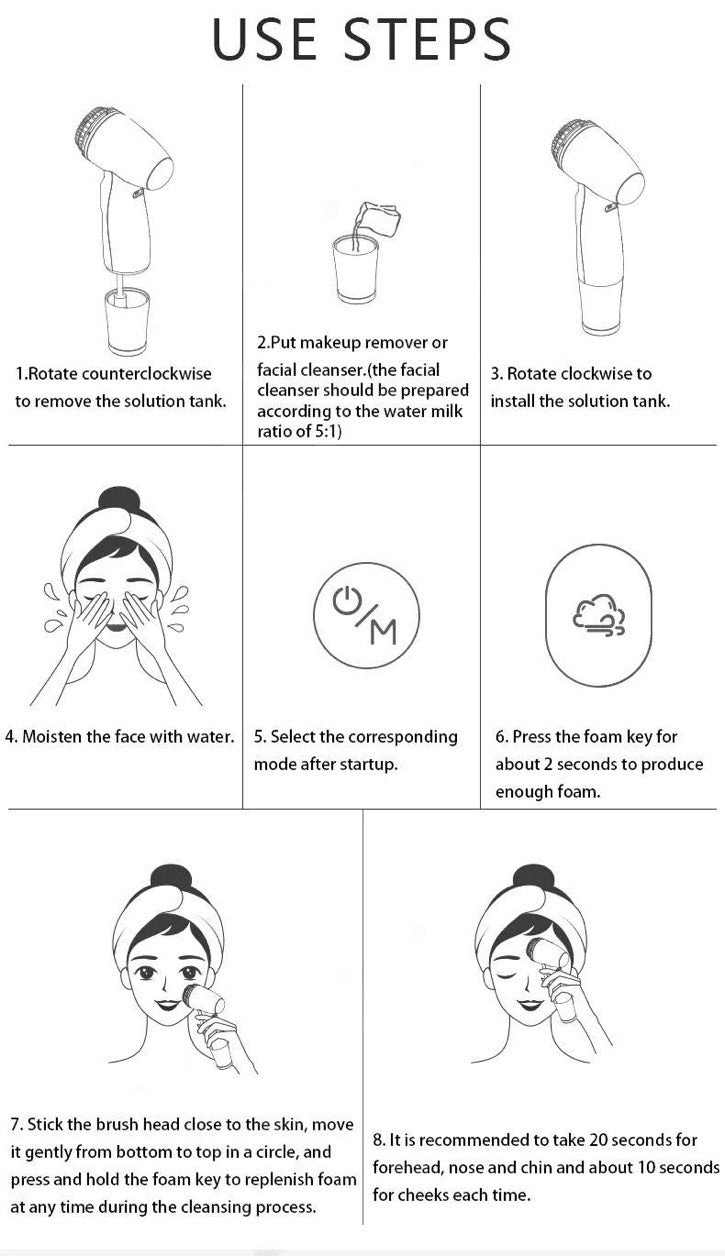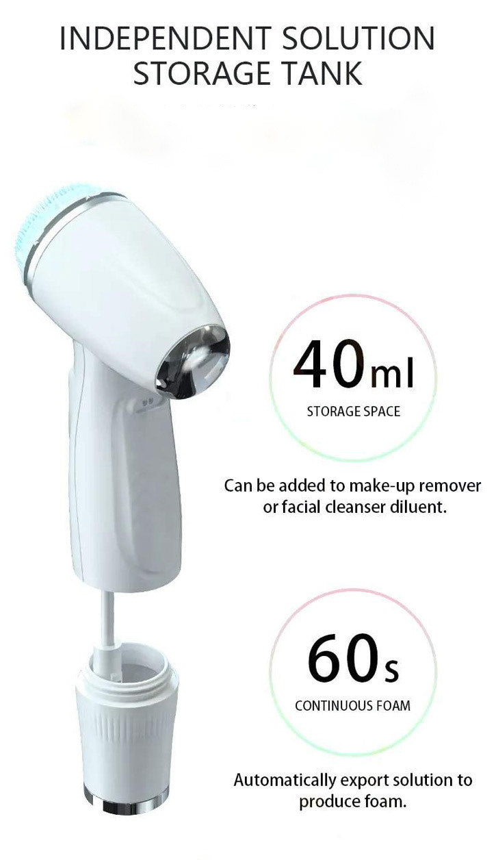 BUILT-IN 40ML TANK – Equipped with a tank that holds up to 40 ML of Micellar oil or other makeup removal liquid, producing continuous foaming for 60 seconds to effectively break down and remove even the toughest makeup.